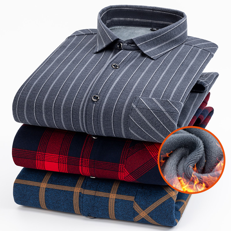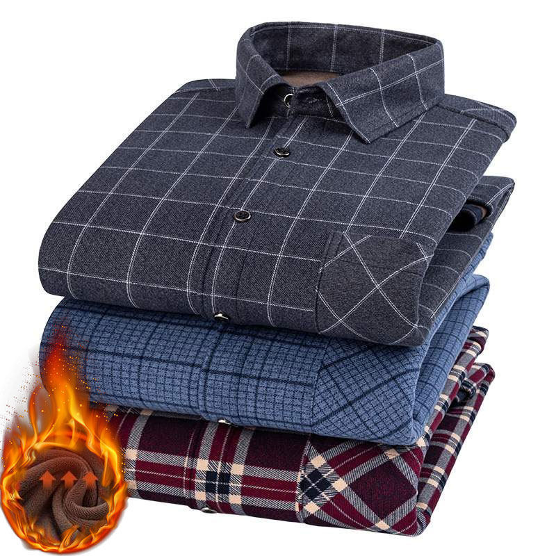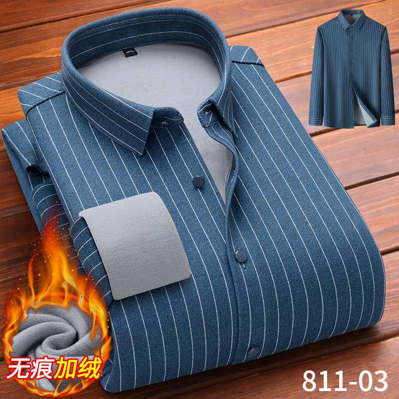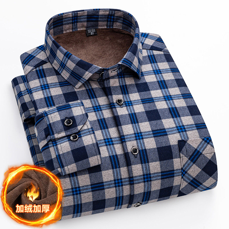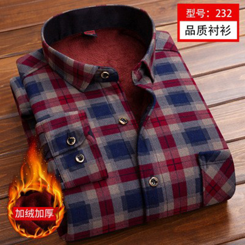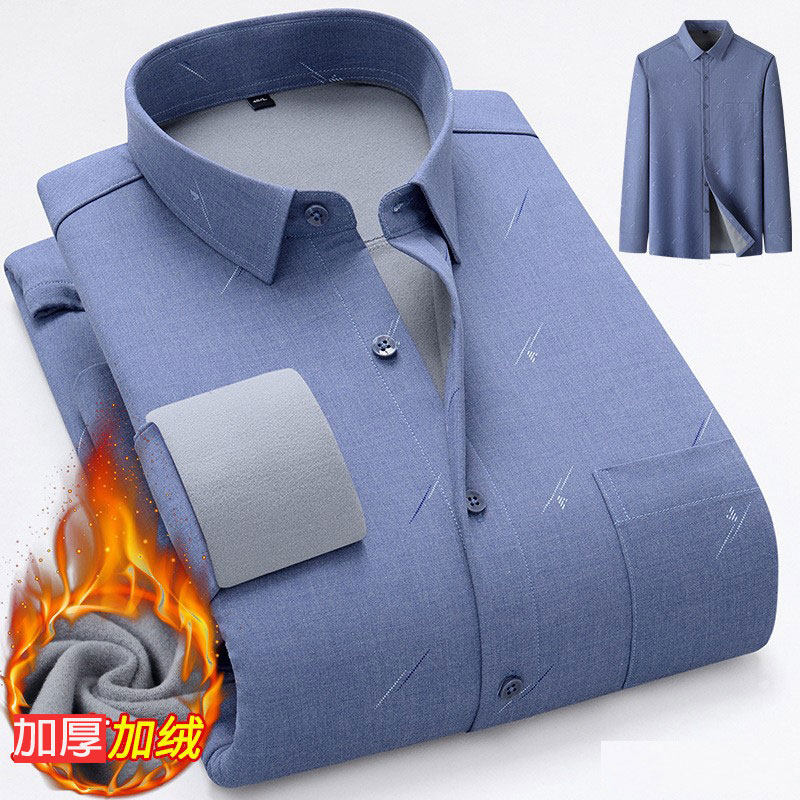 冬季中年保暖衬衫加绒加厚爸爸装保暖衬衣男长袖父亲老年衬衫男装