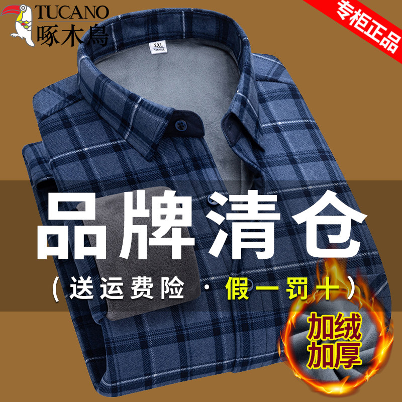 啄木鸟冬季男士保暖衬衫加绒加厚长袖格子衬衣中年休闲父亲爸爸装