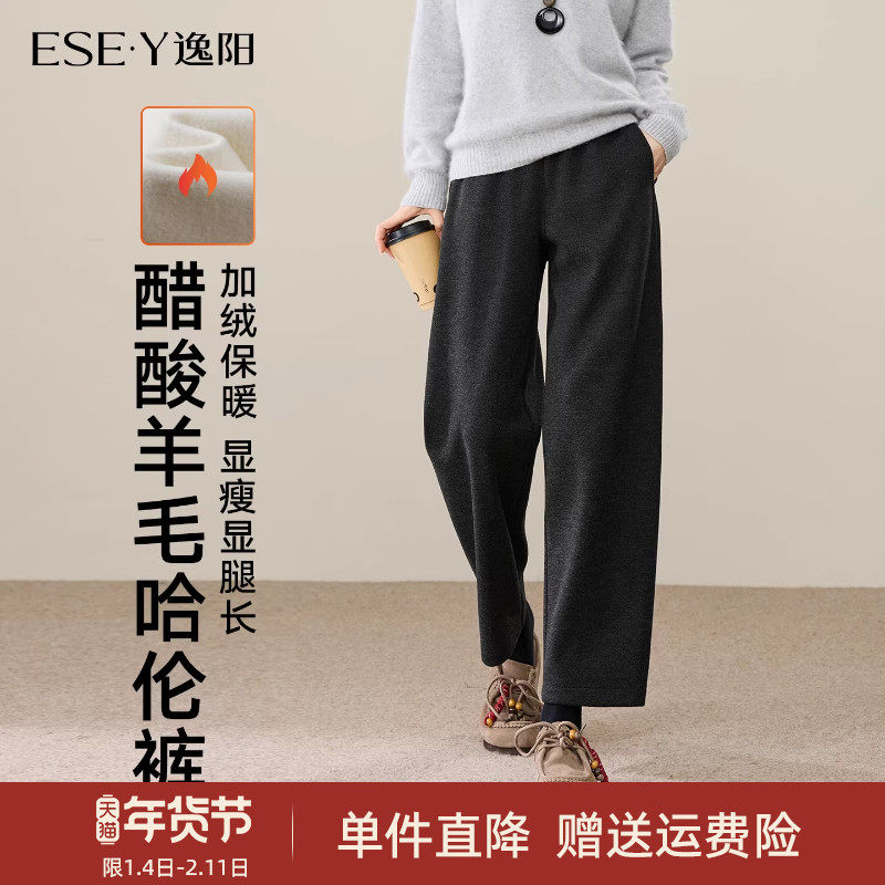 - 冬毛呢哈伦裤女