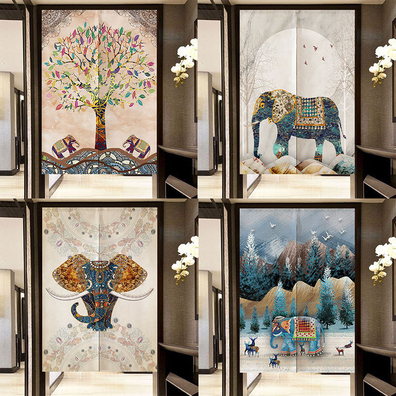 布艺门帘隔断帘卫生间吉象遮挡帘免打孔家用卧室厨房帘子布帘半帘
