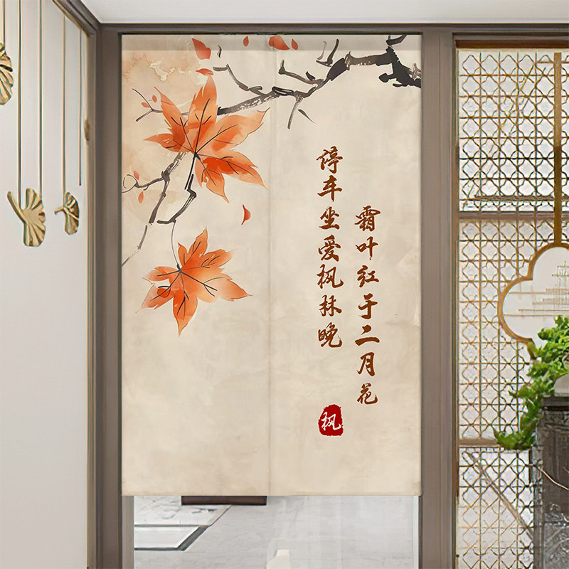 门帘隔断帘卫生间遮挡风中式免打孔荷花家用布帘子卧室半挂帘定制