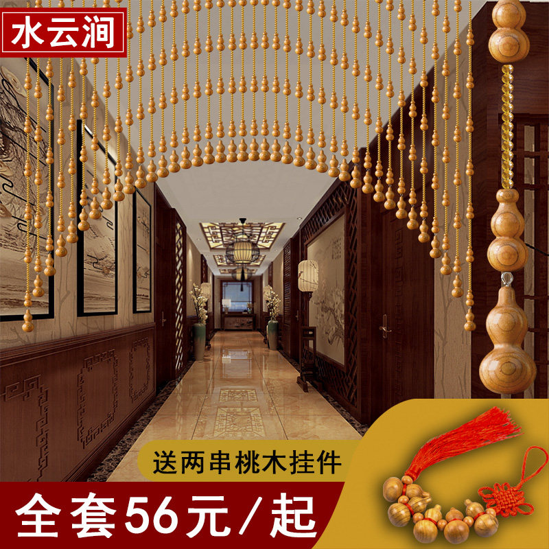 优选六合桃木葫芦门帘隔断帘卫生间原色挂卧室中式客厅定制大门白