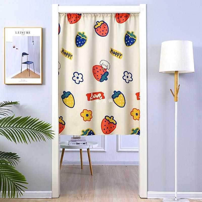北欧简约布艺门帘隔断帘卡通可爱卧室卫生间厕所遮挡帘半帘挂帘子
