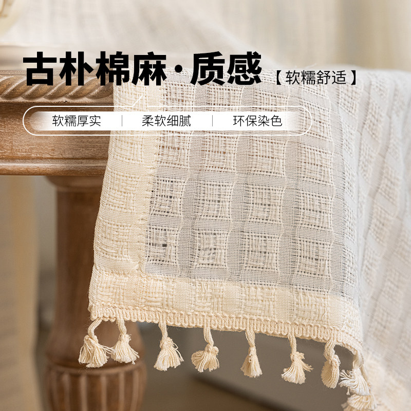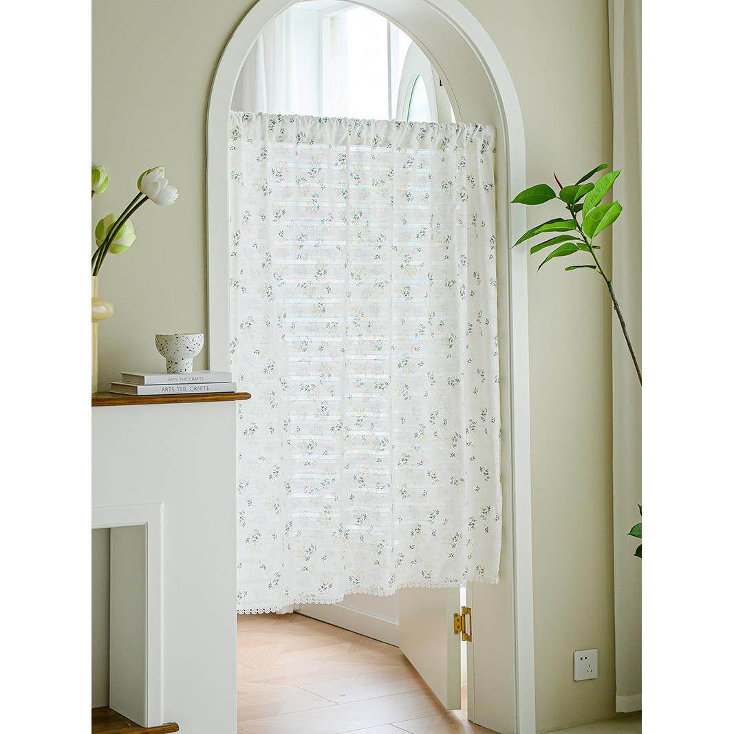 复古奶油风门帘隔断帘卫生间厨房房间装饰遮挡帘免打孔伸缩杆纱帘