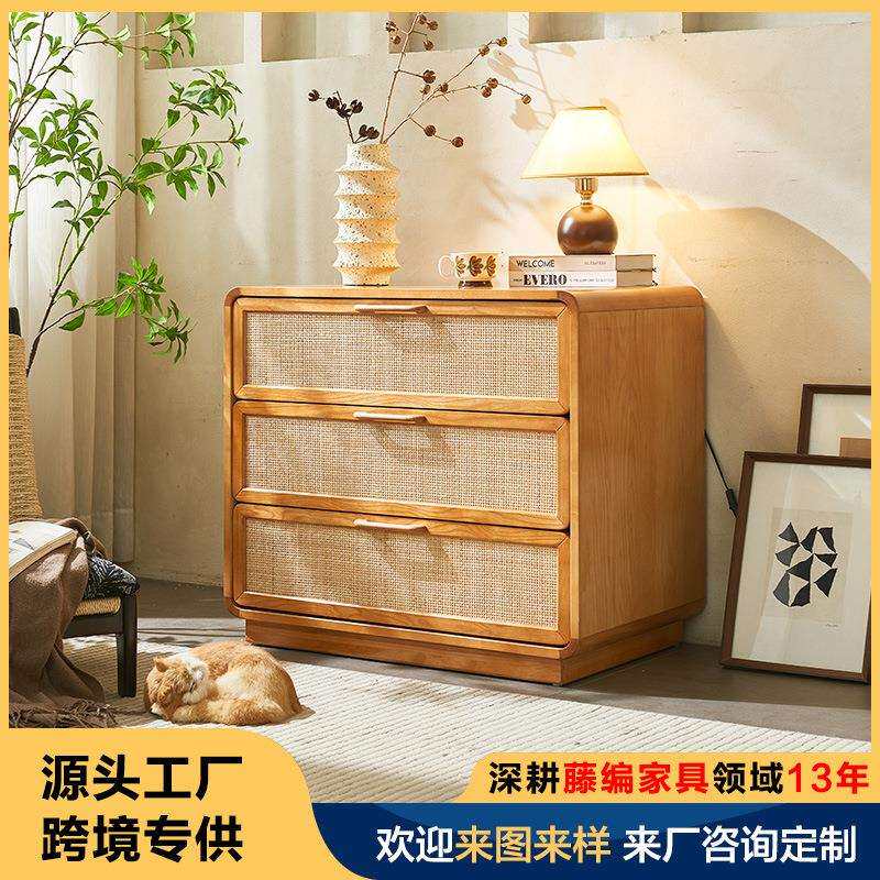 北欧实木三四六斗柜简约现代储物柜卧室多功能床头柜藤编收纳柜子