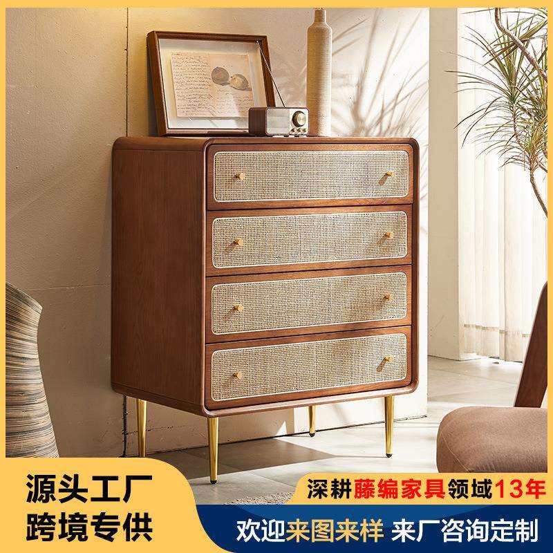 实木藤编四斗柜简约现代中古艺术餐边抽屉收纳柜储物柜日式玄关柜