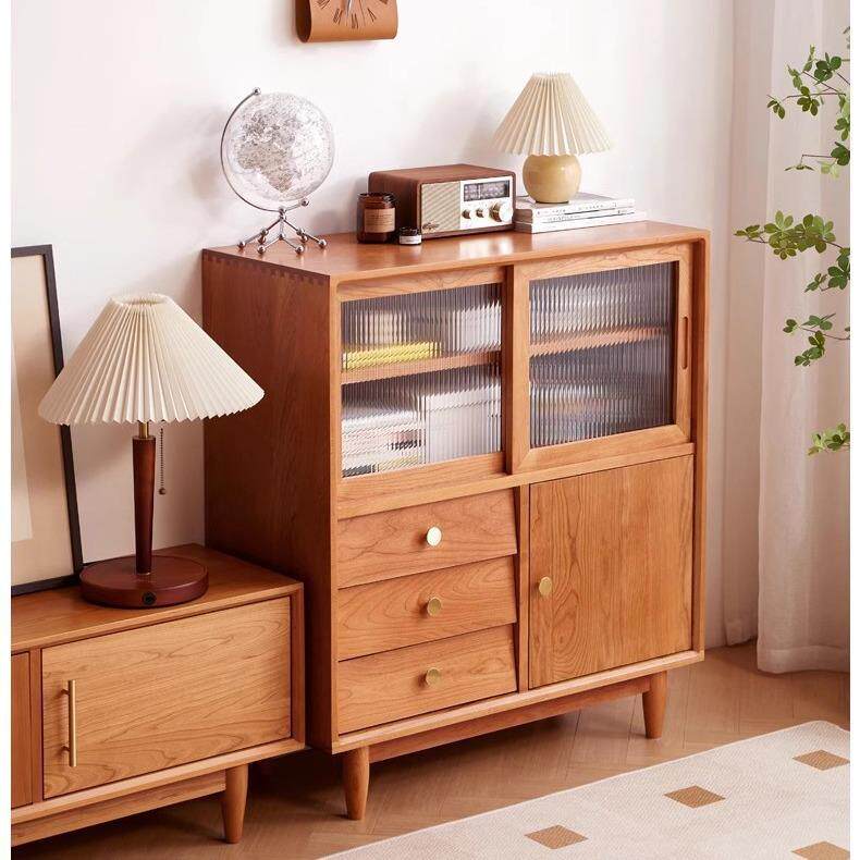 北欧实木餐边柜小户型四斗柜樱桃木碗酒柜电视边柜黑胡桃木矮书柜