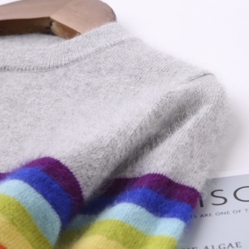 2025儿童纯羊绒衫圆领彩虹条纹毛衣秋冬季保暖百搭打底针织衫新款