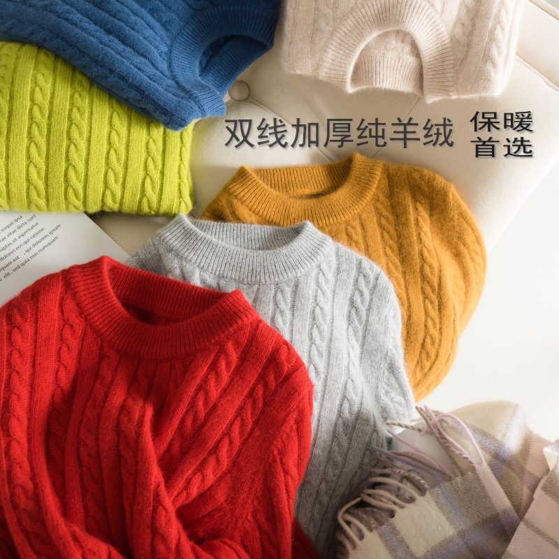 人手入一件!加厚儿童纯羊绒衫圆领男女款纯羊绒毛衣针织打底衫冬