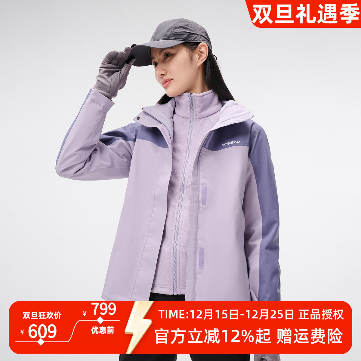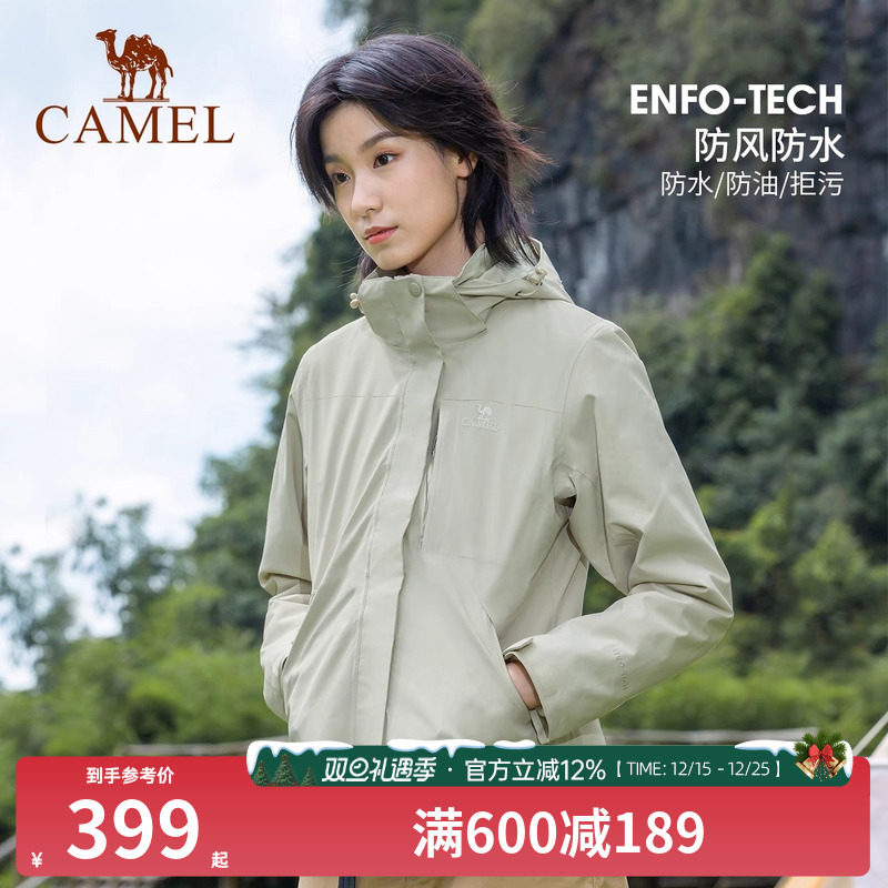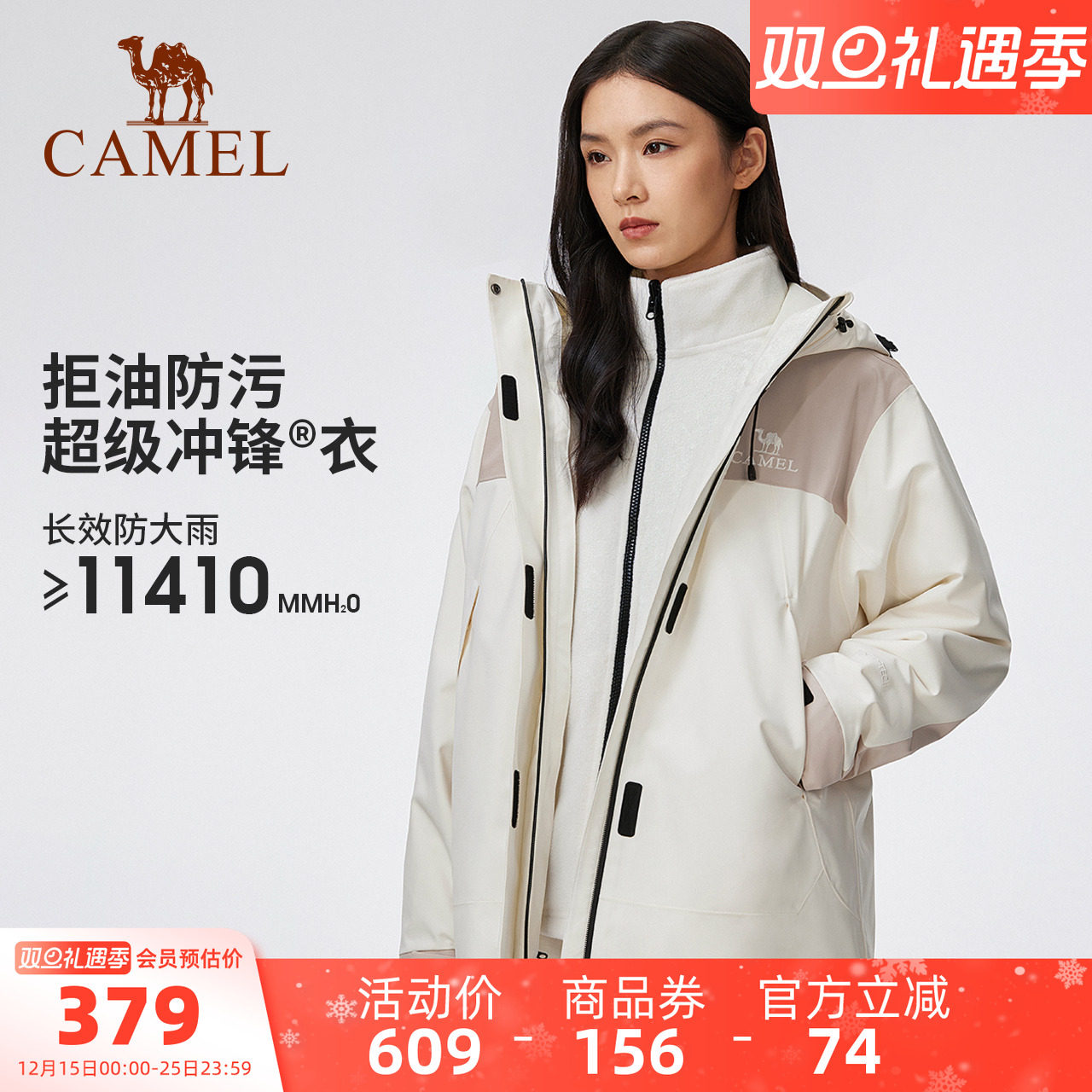 骆驼女装三合一冲锋衣2025新款休闲外套防水防风抓绒内胆两件套