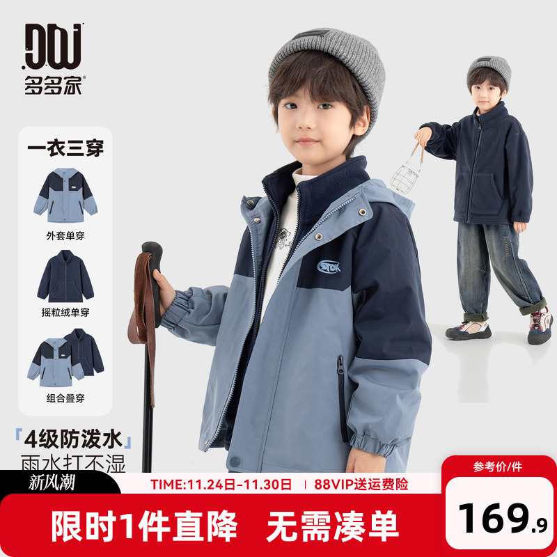 多多家男童外套三合一防泼水秋冬款2025新款儿童中大童冬装拼色潮