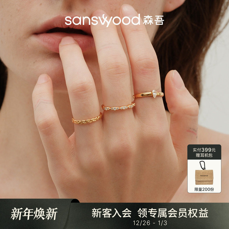 sanswood森吾 细圈镶钻组合套戒 简约通勤叠戴纯银莫桑石戒指尾戒