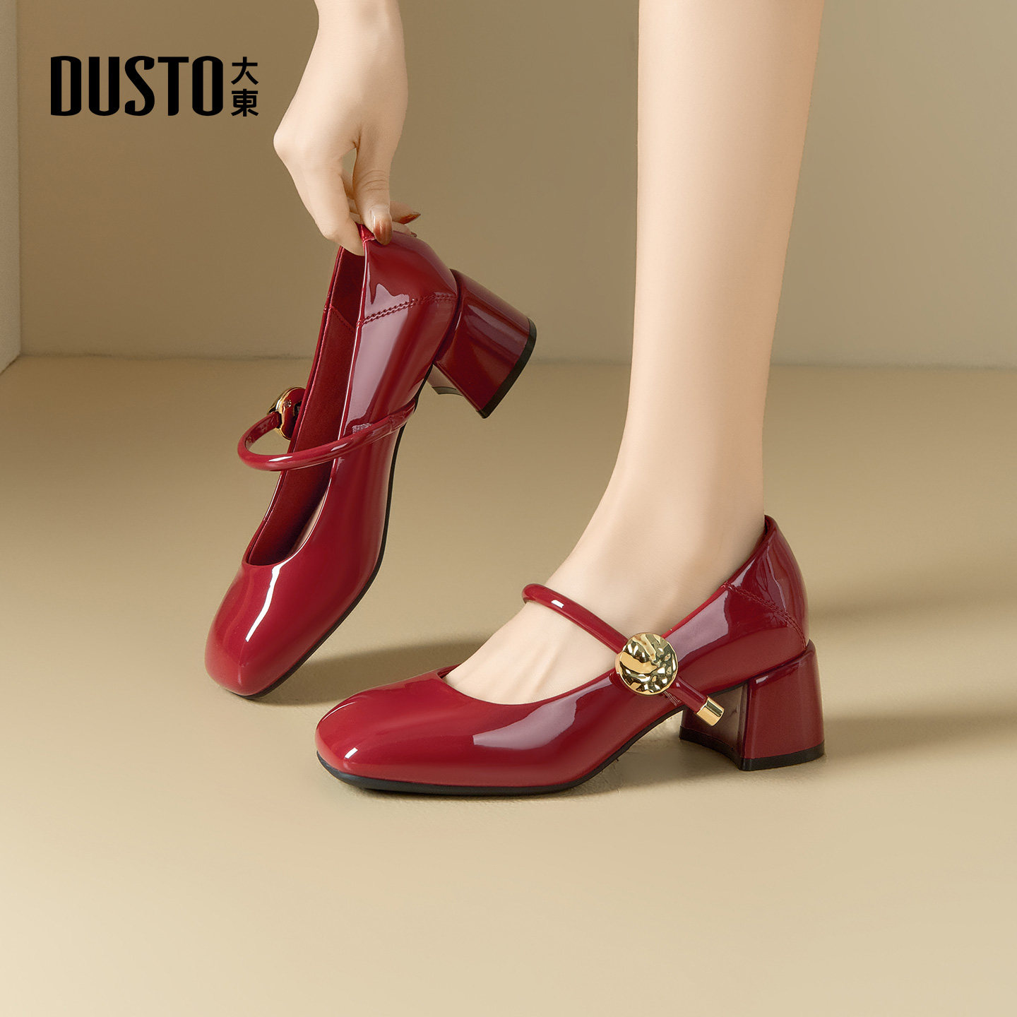 - 方扣粗跟鞋