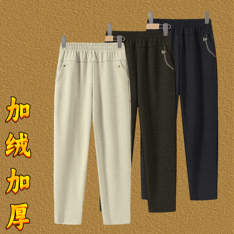 中老年妈妈裤冬季加绒加厚保暖春秋外穿新款高腰宽松奶奶松紧腰裤
