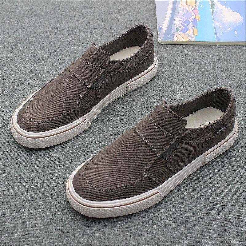 英伦低帮男士春秋帆布鞋懒人开车鞋老北京休闲单鞋子套脚薄底驾车