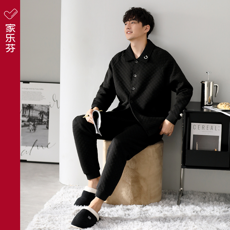 轩靓空气棉夹层睡衣男士冬季纯棉加厚长袖可外穿家居服春秋款套装