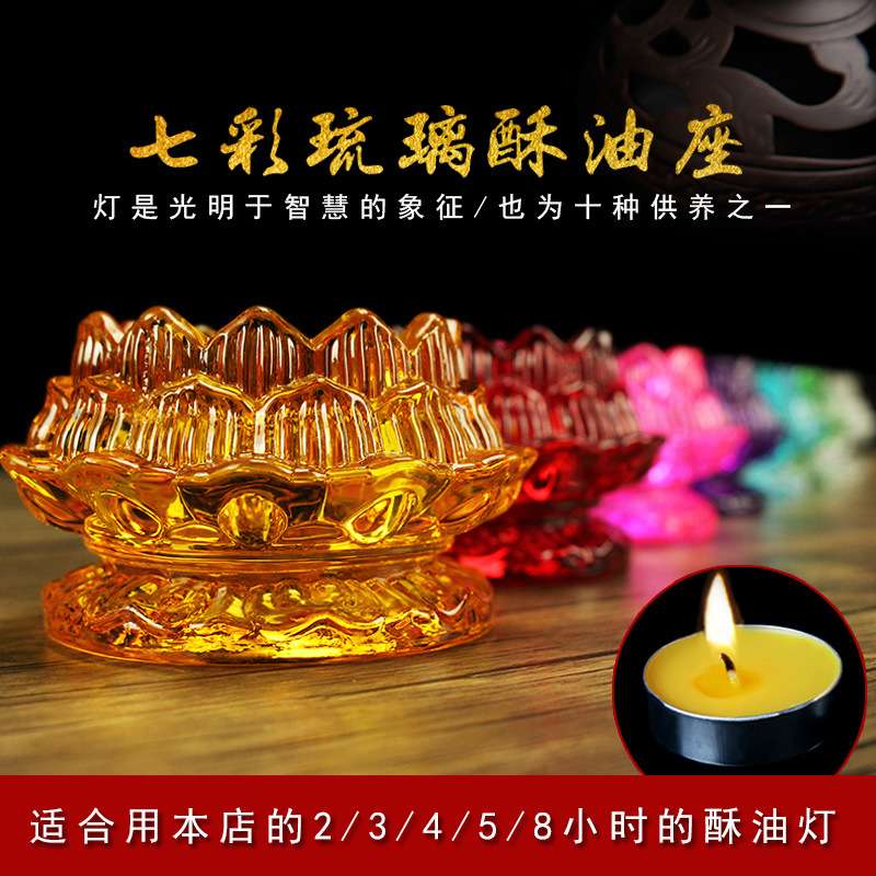 七彩琉璃酥油灯底座家用烛台莲花灯长明灯座供灯蜡烛台座佛灯灯盏