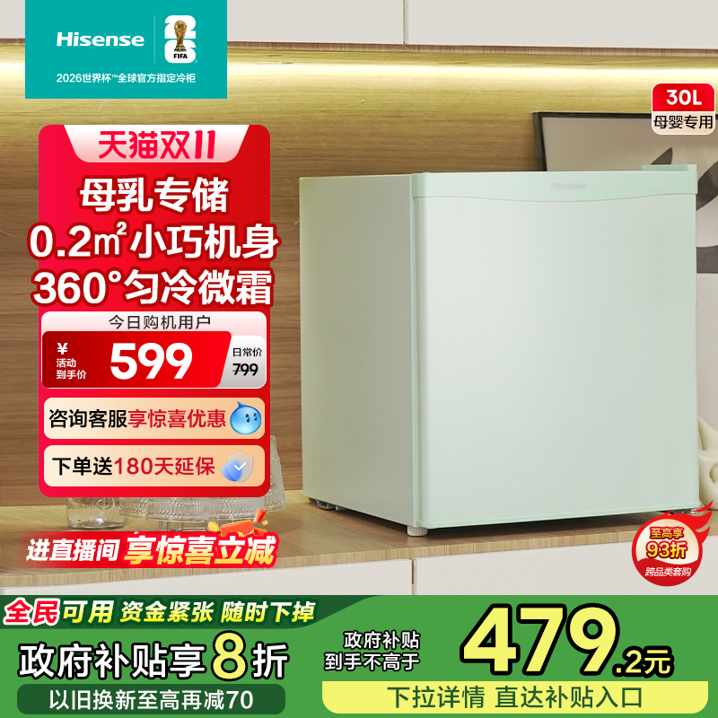 海信30L升母乳小冰柜储奶小型家用冷柜迷你冷冻保鲜立式一级冰箱
