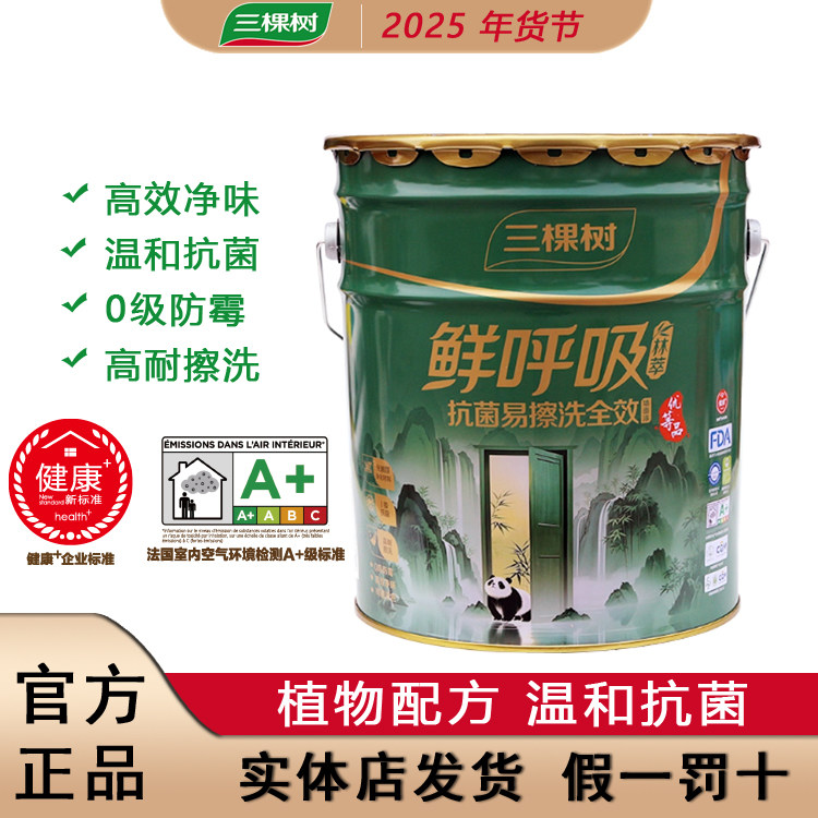 三棵树鲜呼吸抗菌易擦洗全效墙面漆室内防霉家用自刷乳胶漆环保漆