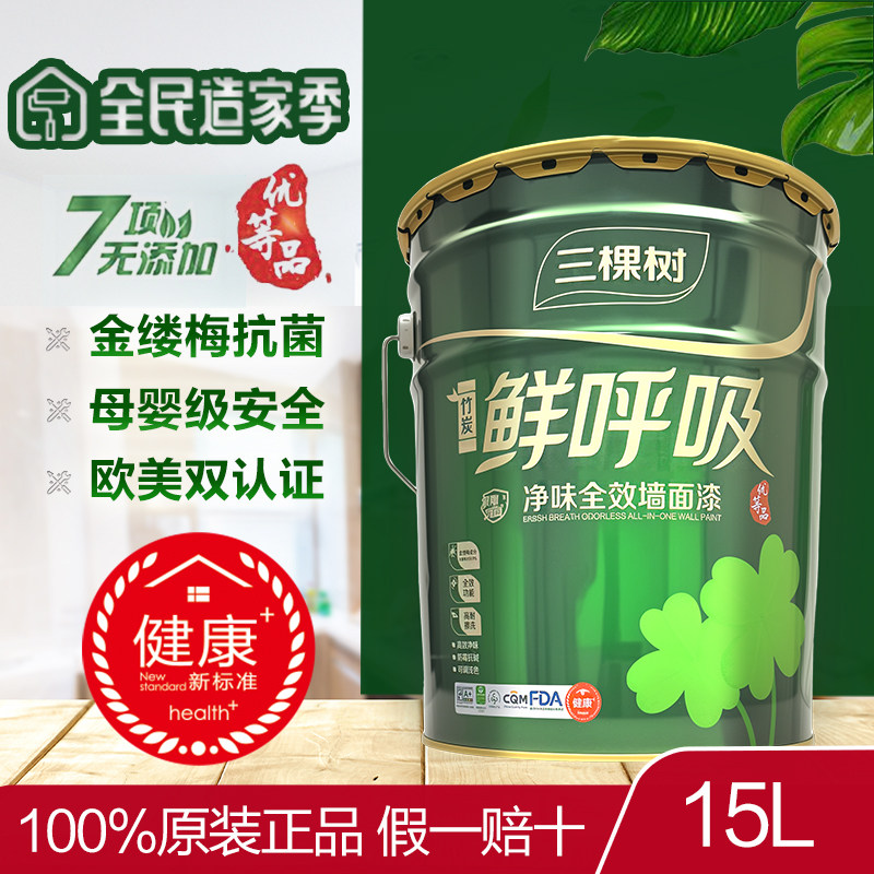 三棵树鲜呼吸净味全效墙面漆,7项无添加,8小时净味优等品乳胶漆