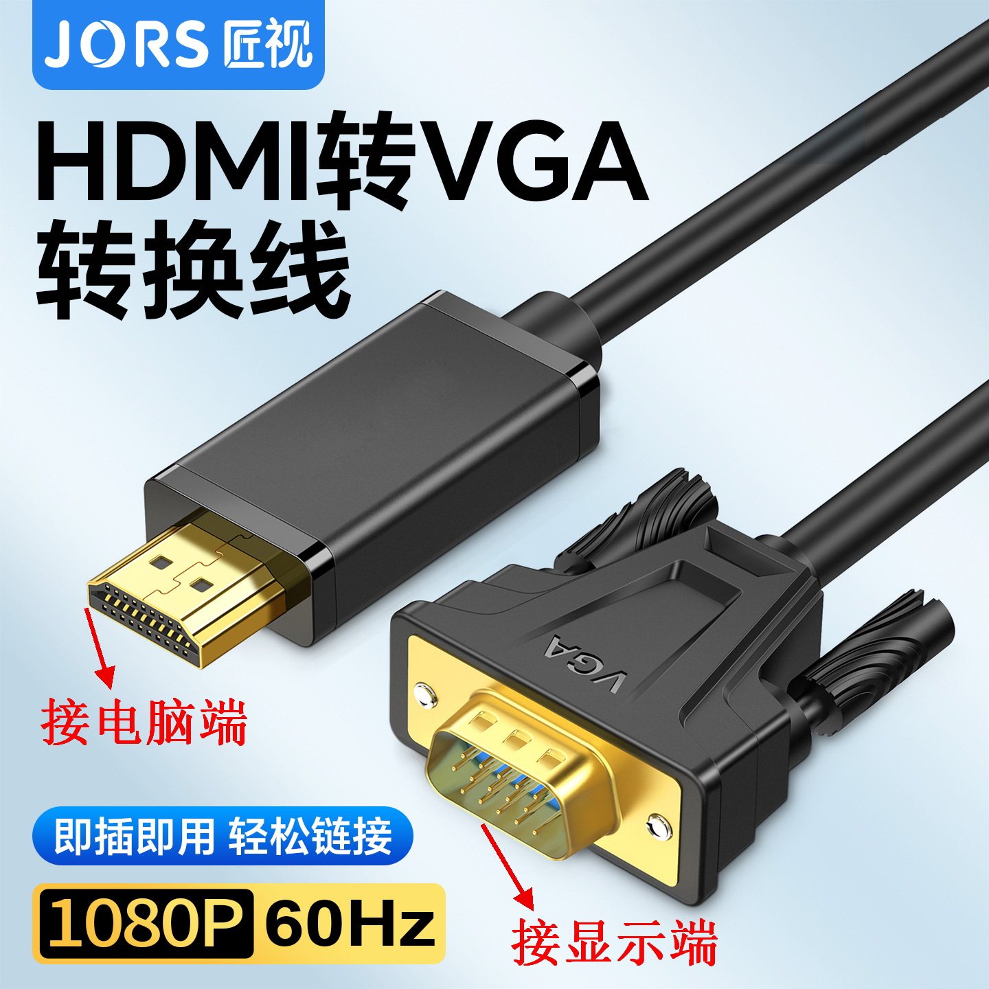 匠视hdmi转vga线连接笔记本电脑主机转换器显示器投影仪高清接头