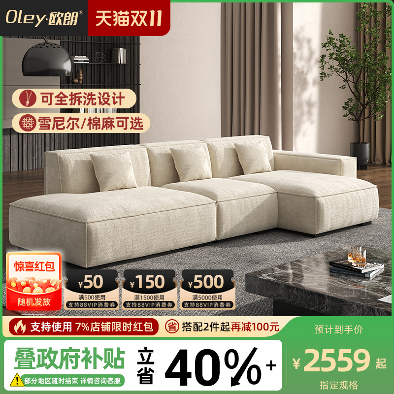 欧朗2025新款可拆洗布艺沙发客厅简约大小户型雪尼尔布艺三人位