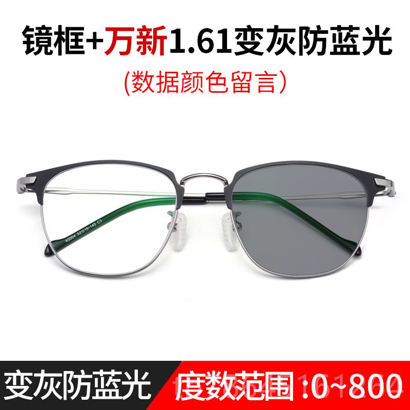 半框变色近视眼镜男款可配度数自动防蓝光抗辐射平光成品近视镜男