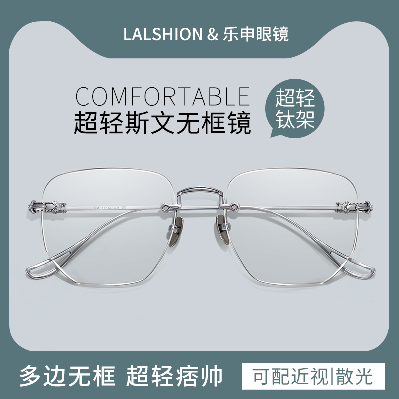 纯钛无框眼镜框近视镜男款网上可配度数超轻无边框眼睛架平光镜女