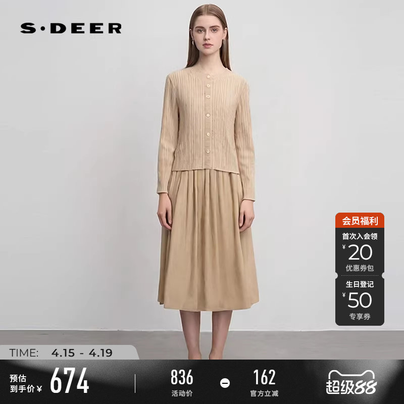 sdeer圣迪奥春秋装女装优雅收腰针织衫连衣裙套装S25381404