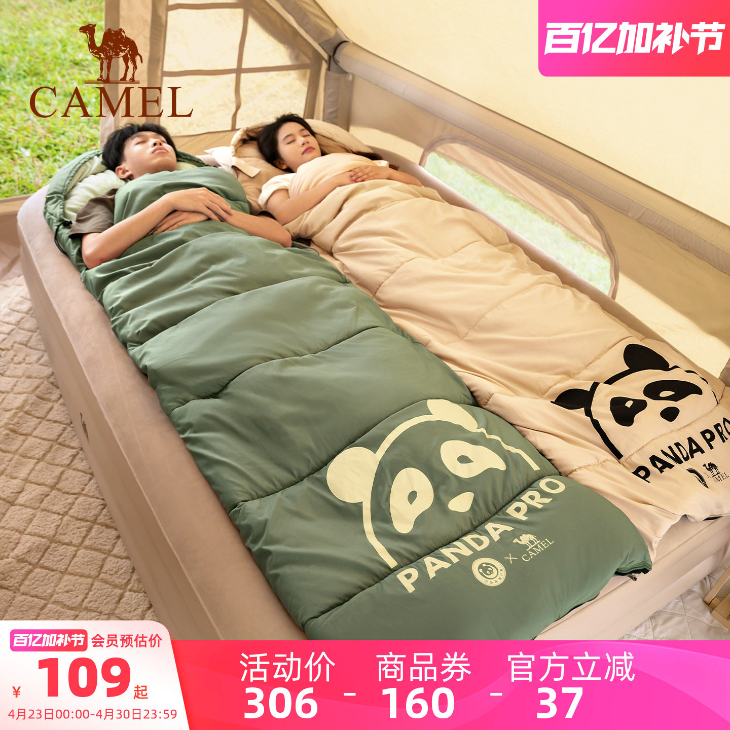 骆驼熊猫联名户外露营睡袋大人成人款隔脏保暖春秋棉加厚防寒睡袋