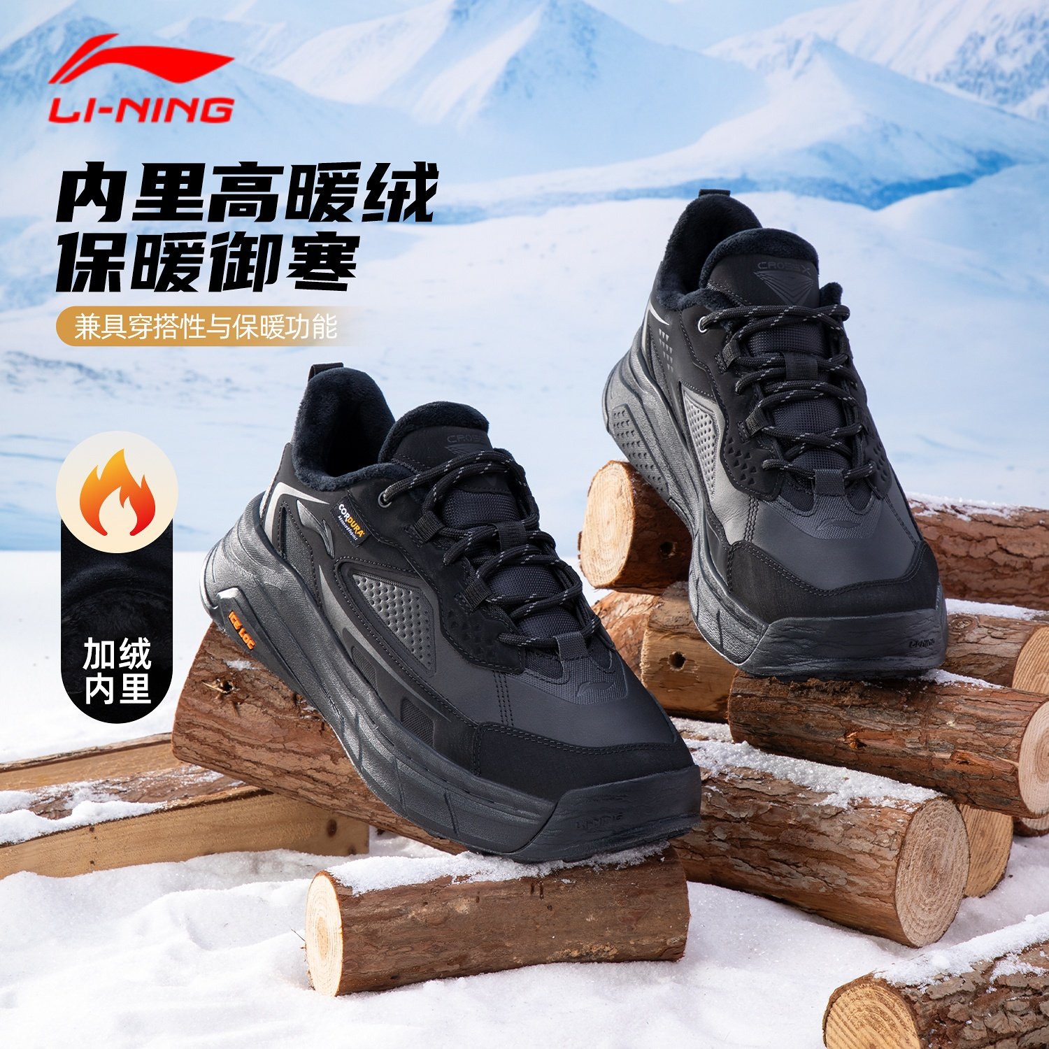 李宁休闲鞋男鞋星途2026秋冬新款耐磨加绒保暖二棉男士运动鞋棉鞋