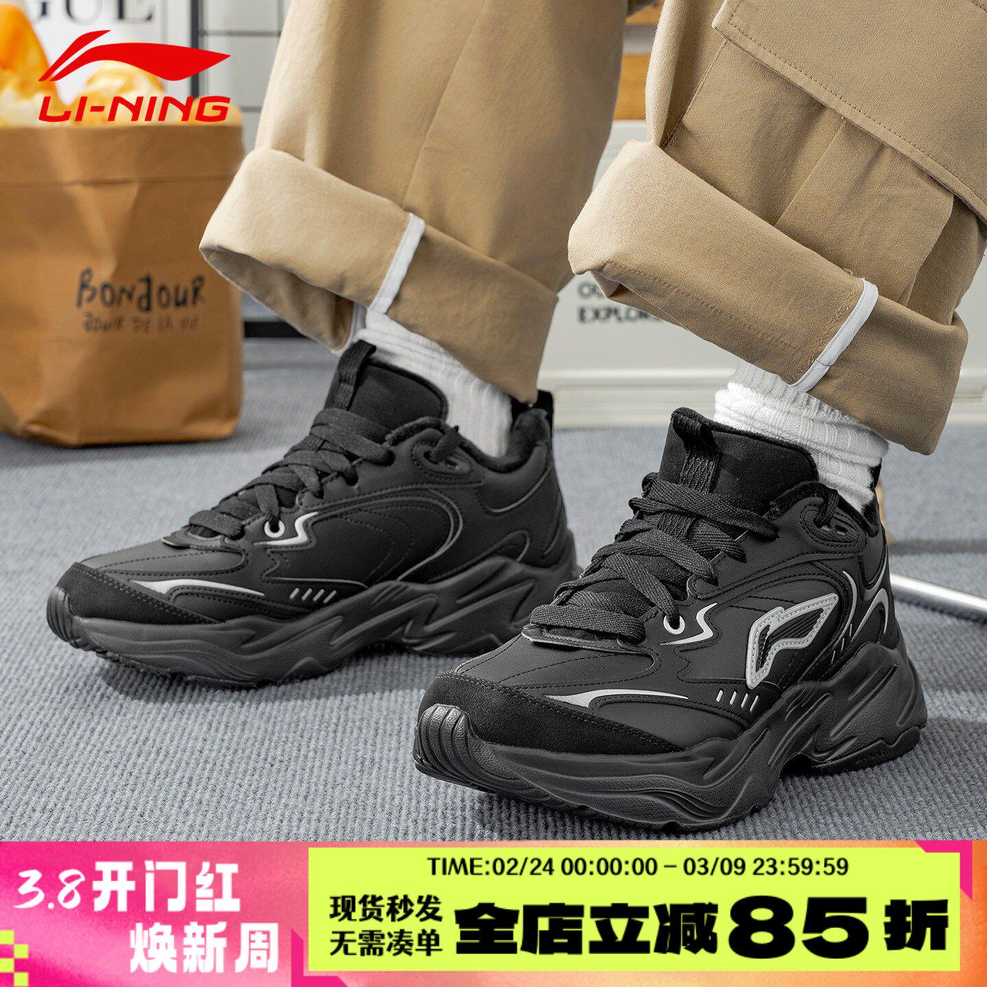 李宁休闲鞋男款板鞋黑色冬季新款男生百搭鞋子男士2026运动鞋男鞋