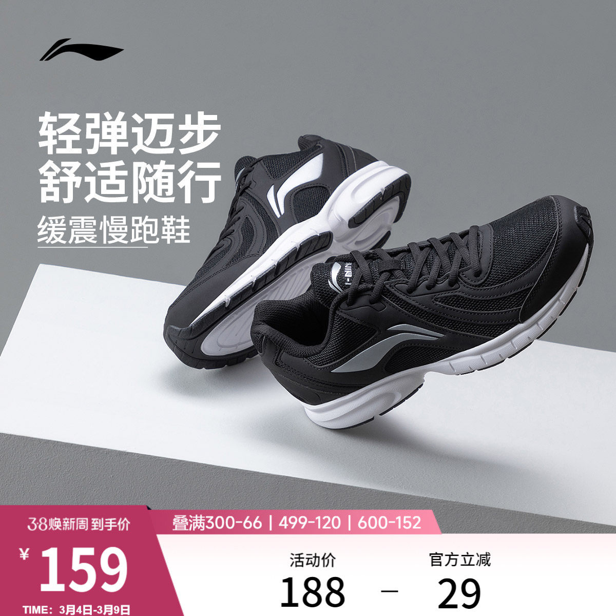 李宁跑步鞋男鞋官方减震耐磨网面轻便透气跑鞋黑色休闲慢跑运动鞋