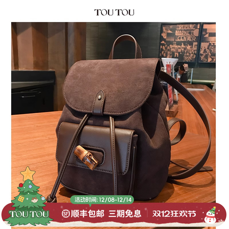 TOUTOU双肩包女2025原创大容量竹节小背包复古百搭学院风小众书包