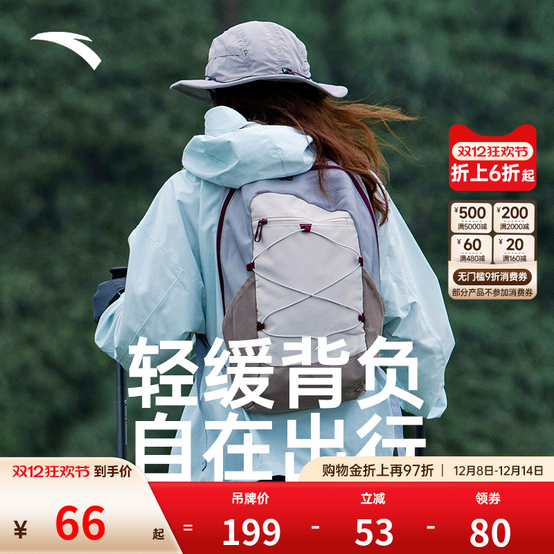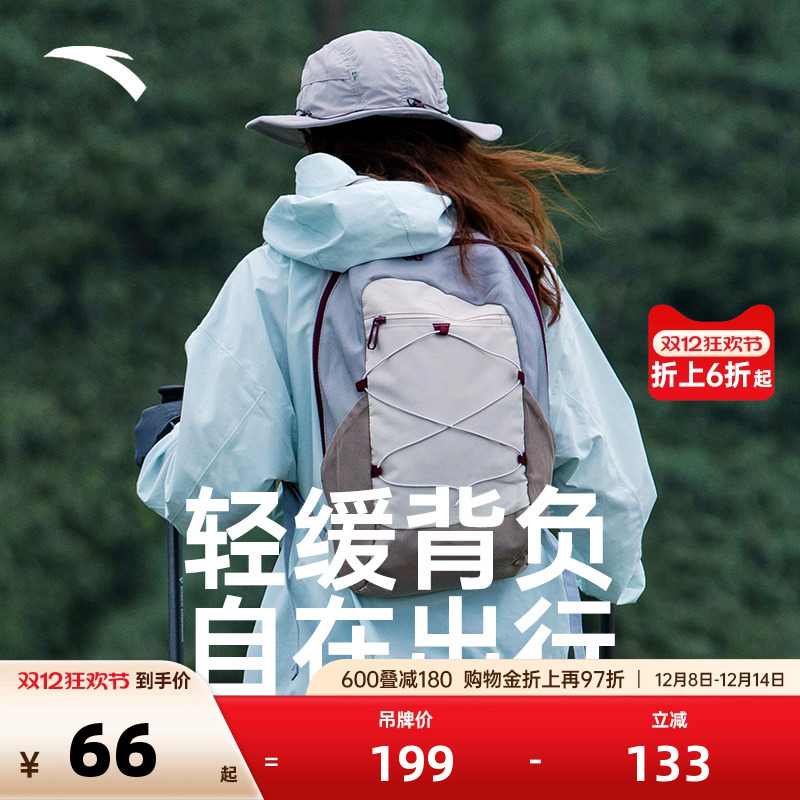 安踏双肩包纯色男女同款新款轻户外旅行骑行背包电脑包学院风书包