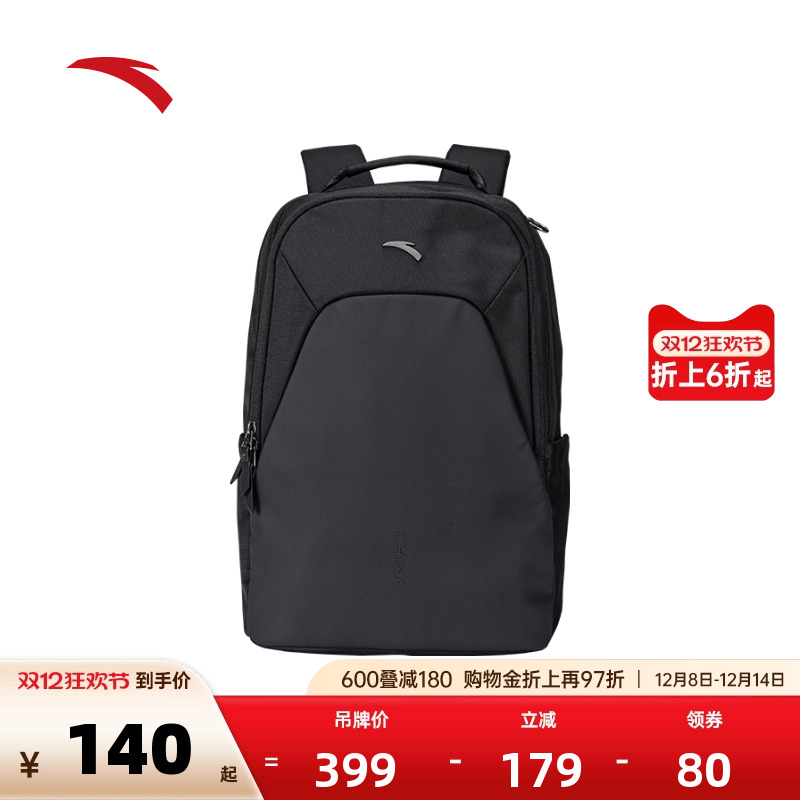 安踏防泼水双肩包纯色男女同款大容量旅行双肩背包电脑学院风书包