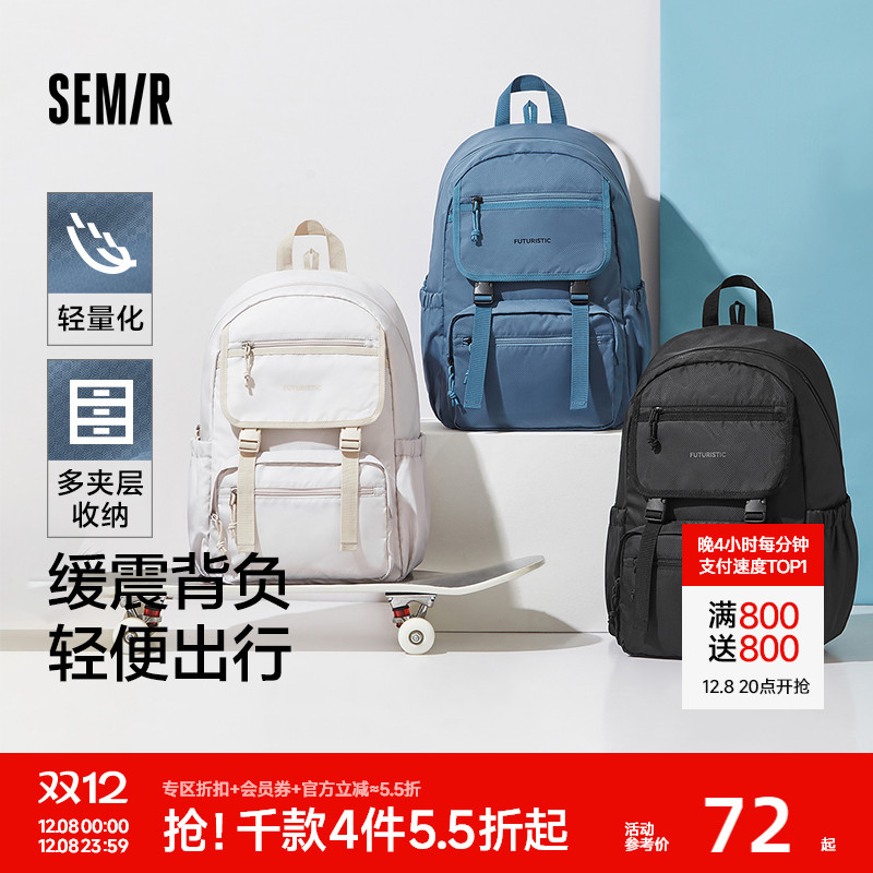 森马双肩包男2024新款轻便大容量电脑包书包肌理感情侣背包学院风
