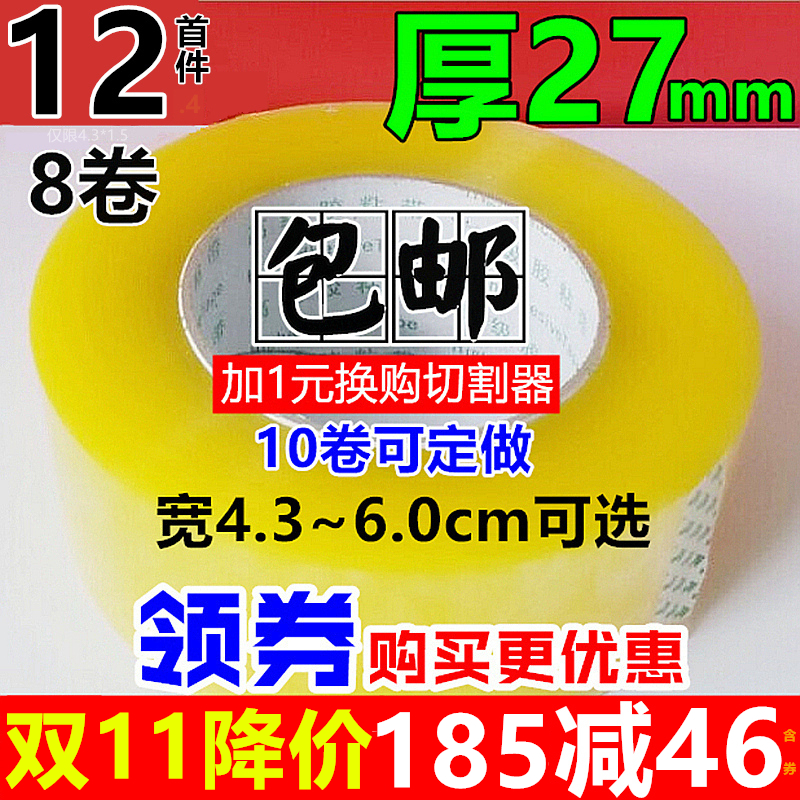宽4.5cm宽6cm壹品骄 透明包装胶带批发米黄打包快递带 胶条快递封口胶纸淘宝胶带批发印字超大卷长300