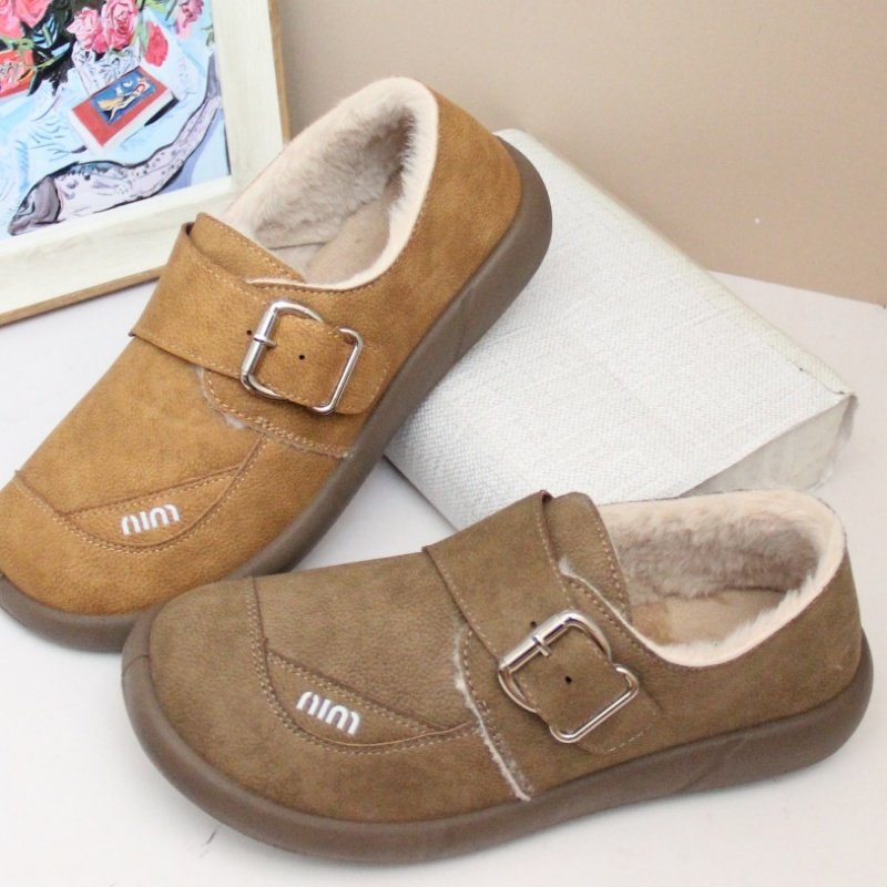 加绒豆豆鞋女秋冬新款平底休闲棉鞋外穿毛毛鞋保暖时尚中老年布鞋