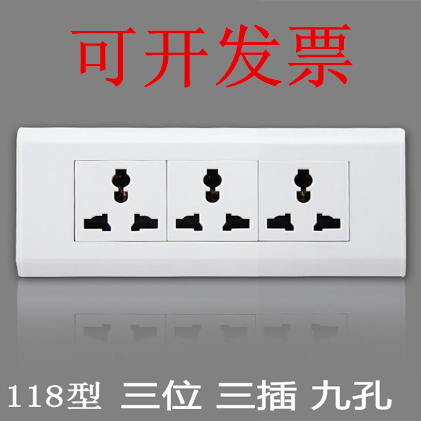 118型墙壁电源开关插座 三位/ 三插 多功能九孔插座9孔万能插座