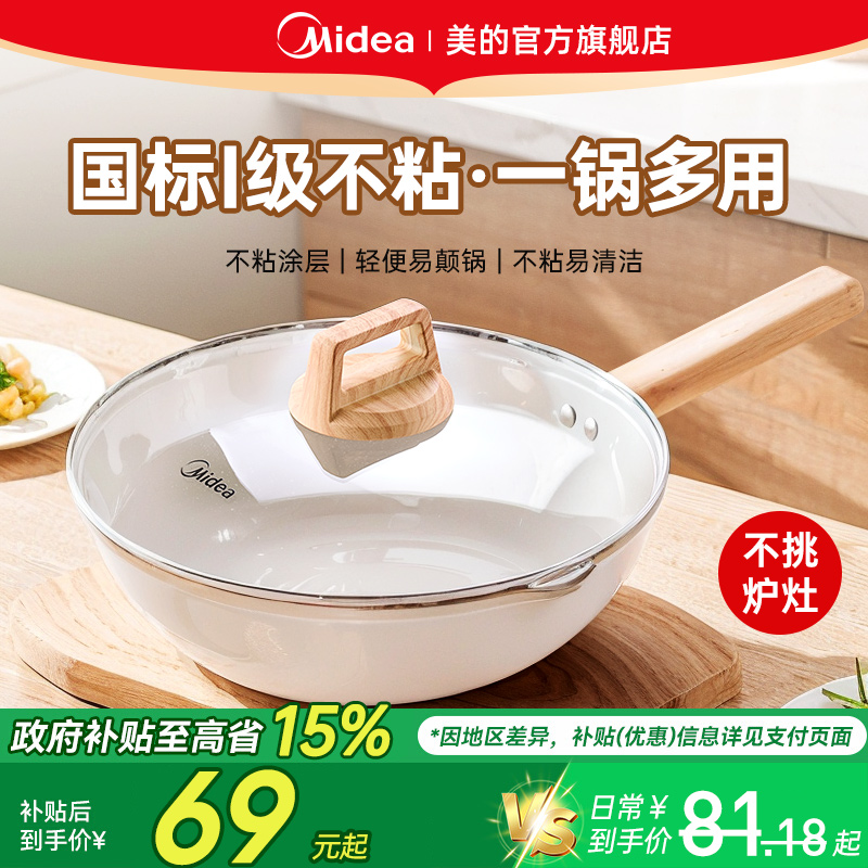 美的不粘锅炒锅家用锅炒菜锅平底锅麦饭石色电磁炉燃气灶专用炊具