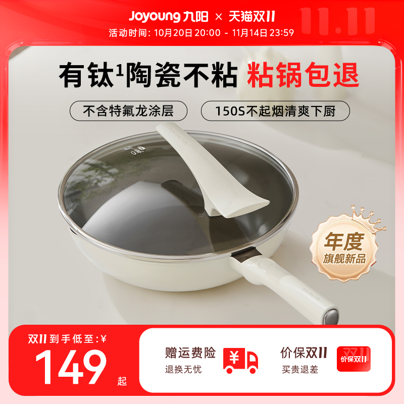 九阳钛锅陶瓷不粘锅炒锅家用平底炒菜锅电磁炉专用官方旗舰新品炊