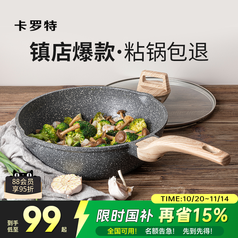 卡罗特不粘锅炒锅家用麦饭石炒菜锅平底锅不沾锅电磁炉燃气灶专用