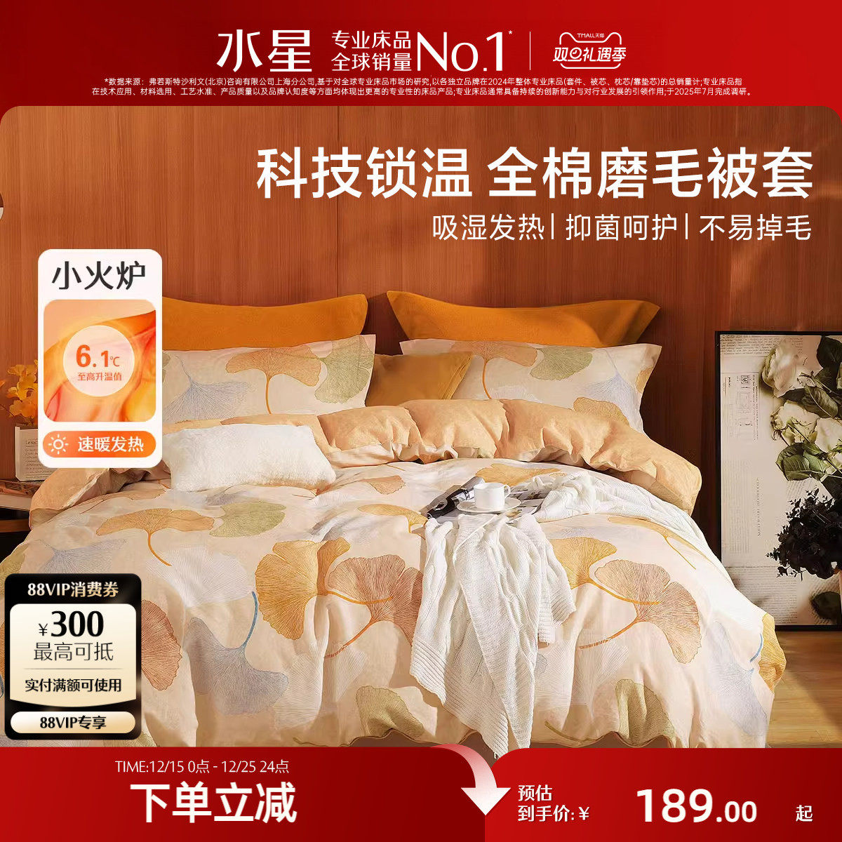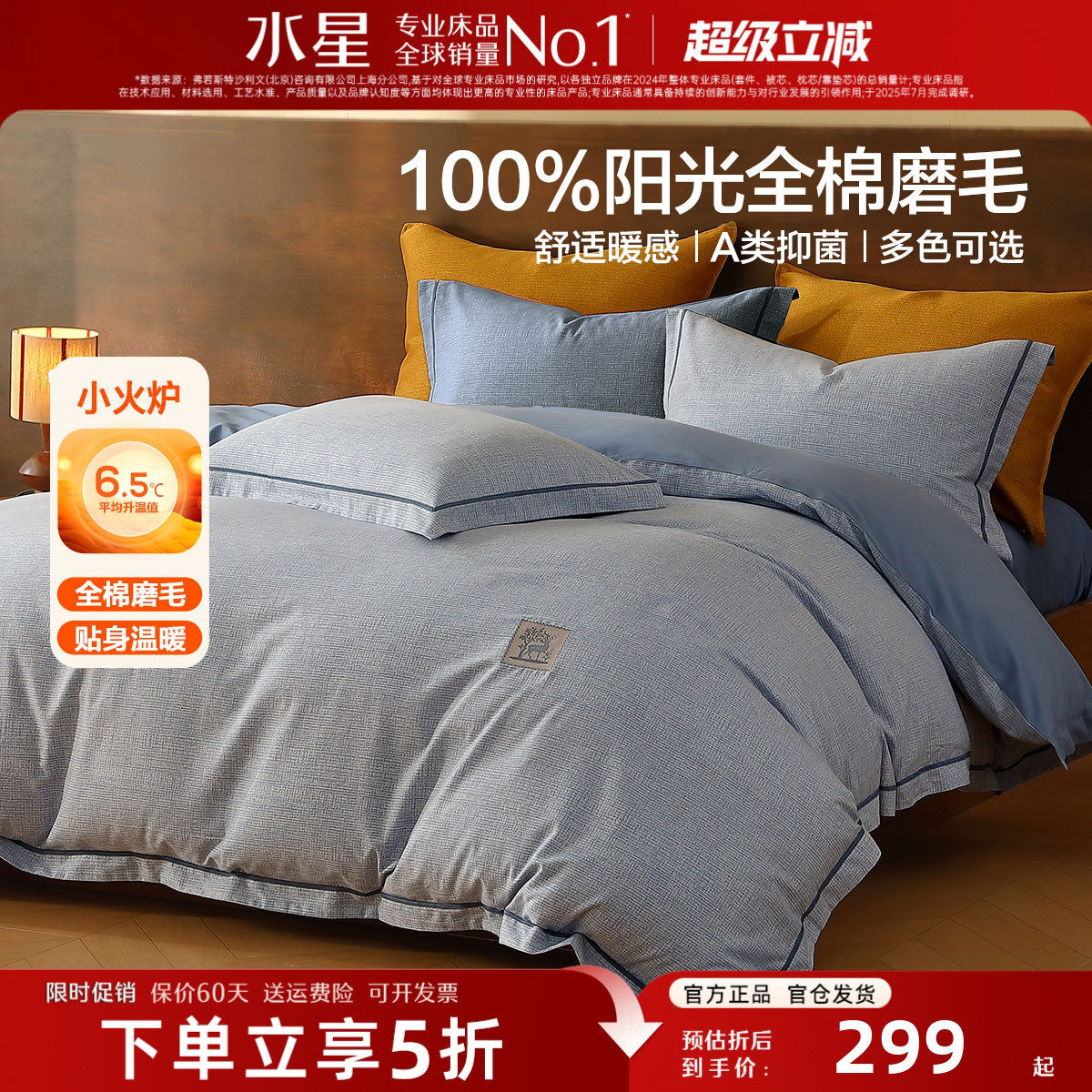 水星家纺四件套全棉双面磨毛床品秋冬季A类纯棉加厚保暖被套床单