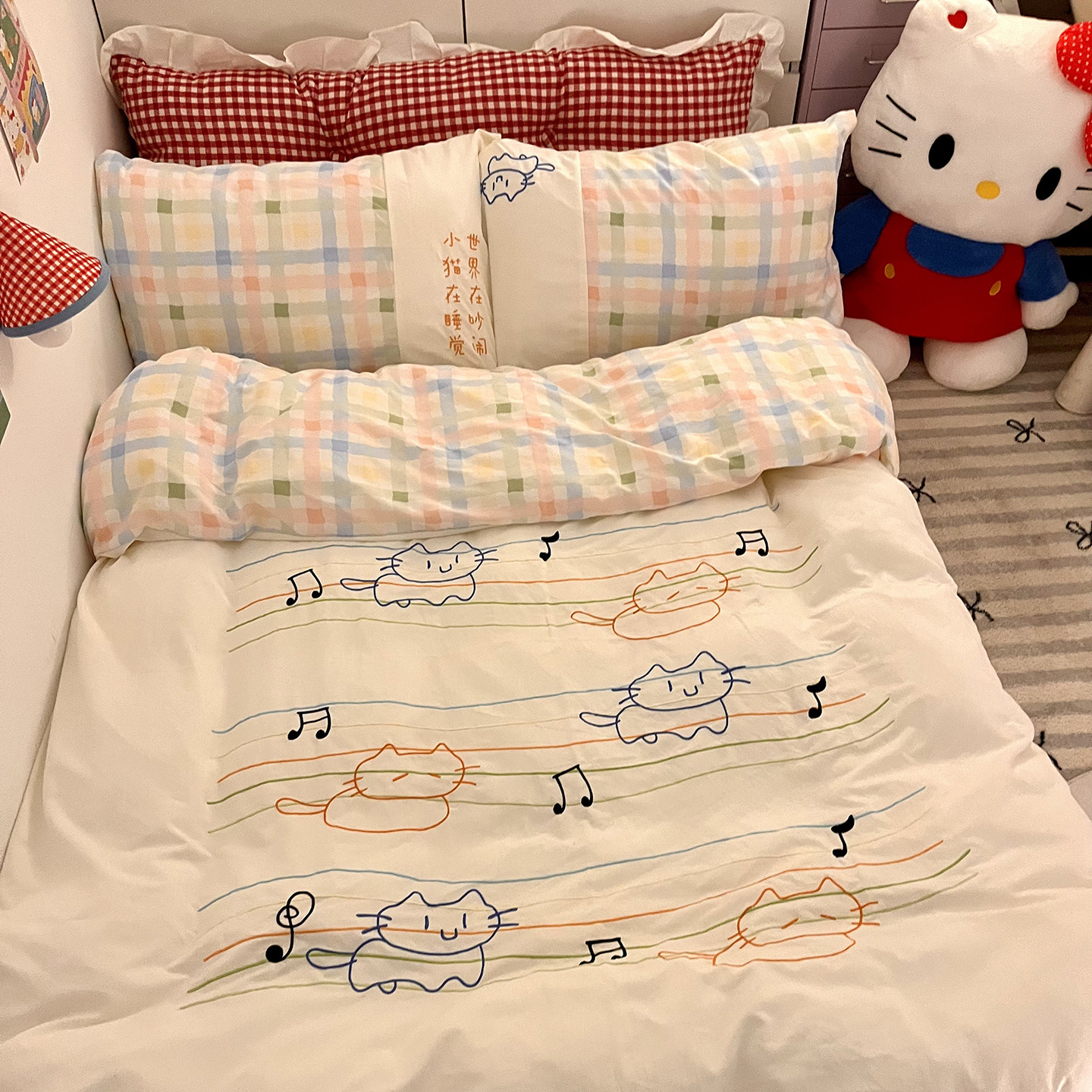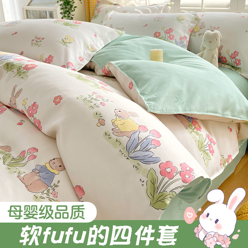 日式婴儿天竺棉四件套全棉学生宿舍床水洗纯棉三件套双面磨毛床品