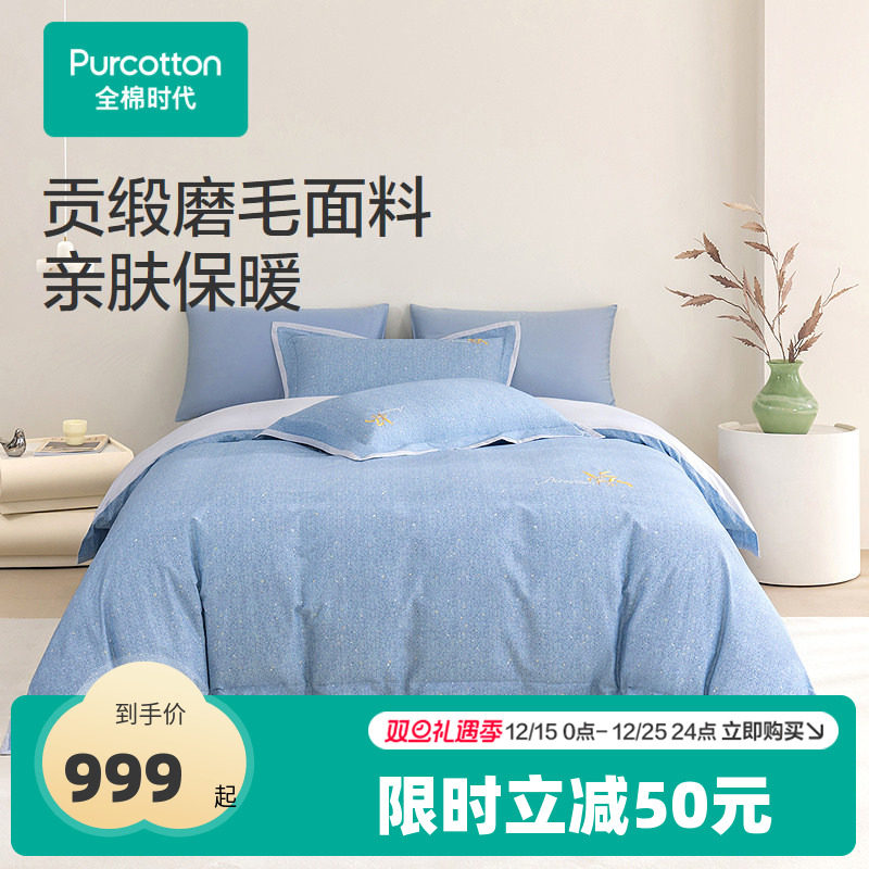 【新品】全棉时代四件套秋冬款100%纯棉全棉贡缎磨毛床品床单被套