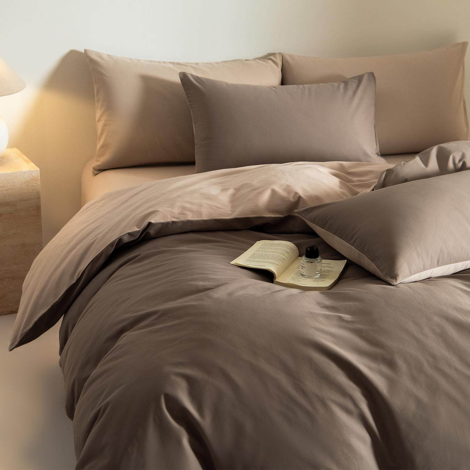 冬天亲肤奶茶咖色100支全棉磨毛床品被套1.8米床罩纯棉床单四件套