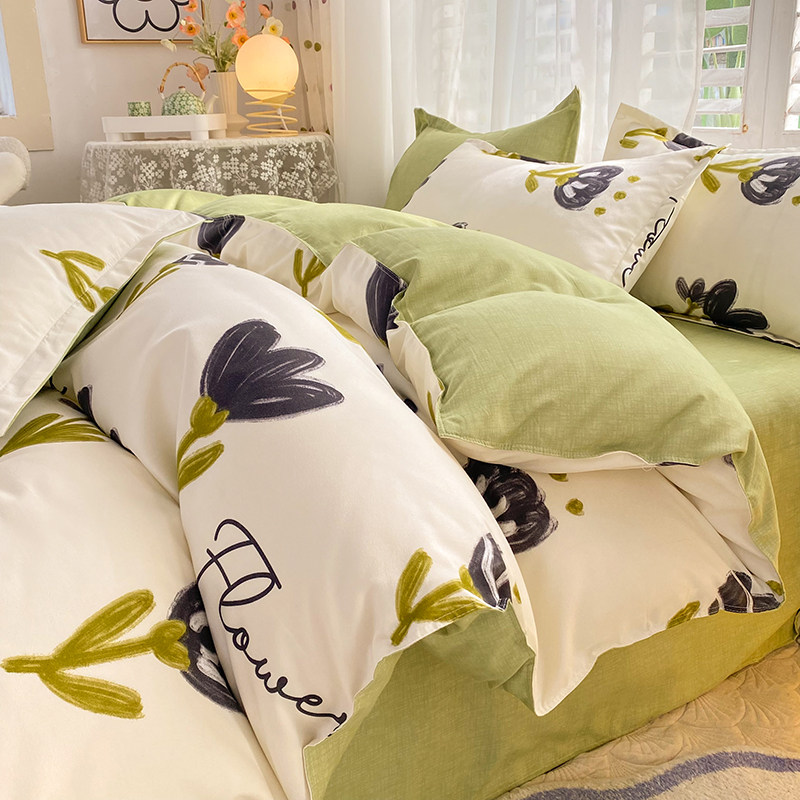 小清新全棉加厚四件套2025新款纯棉磨毛床品秋冬亲肤床单被套床笠