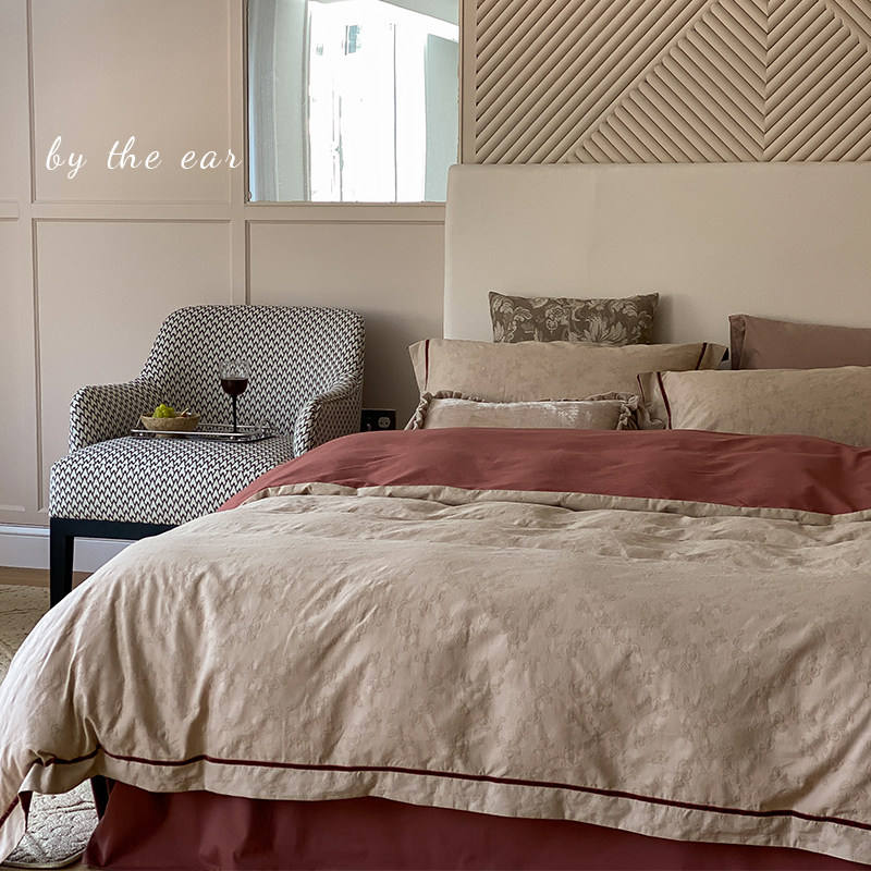 在耳边轻奢色织提花全棉长绒棉四件套简约复古100s贡缎磨毛床品