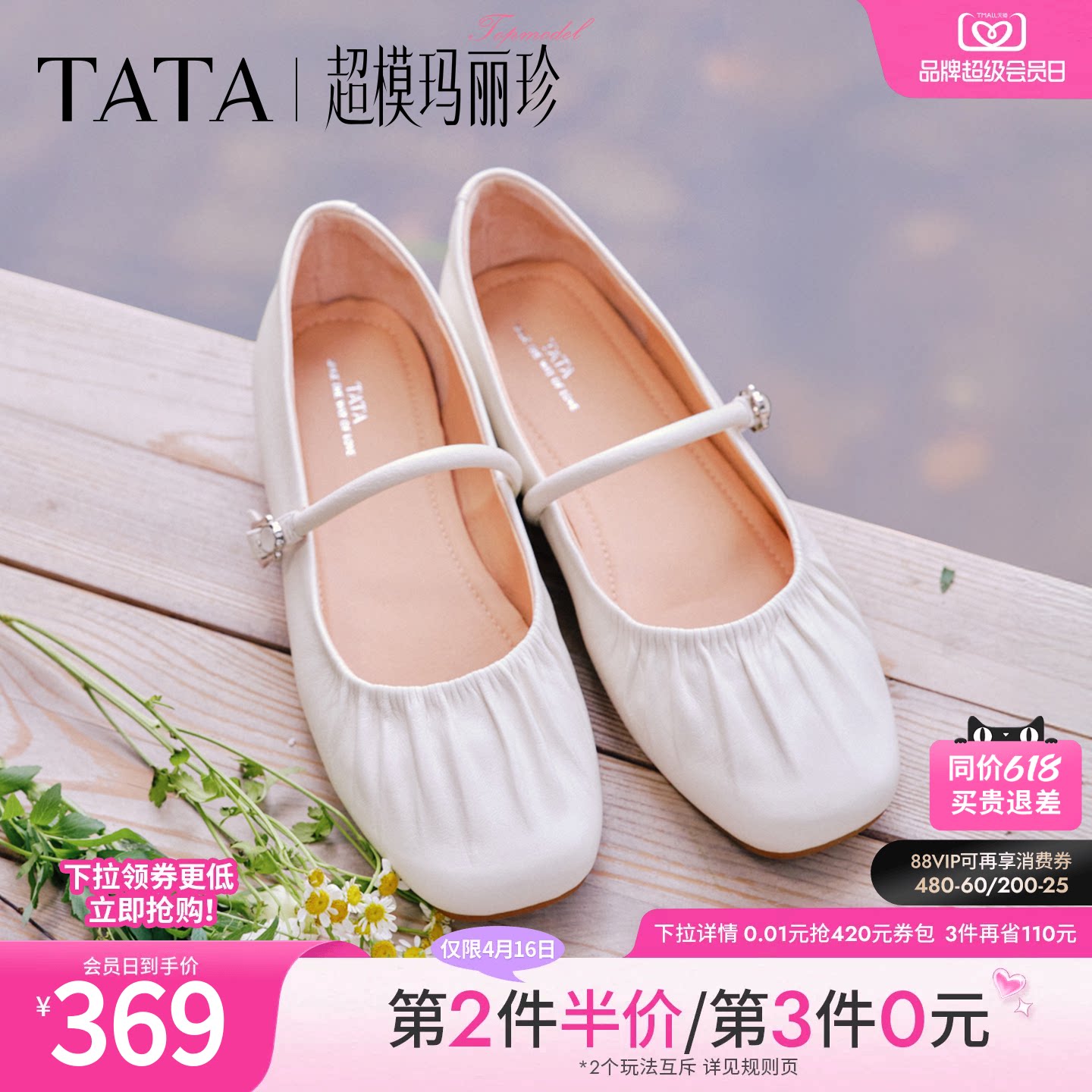 TATA他她超模玛丽珍鞋女平底单鞋女真皮休闲芭蕾舞鞋小皮鞋2026新